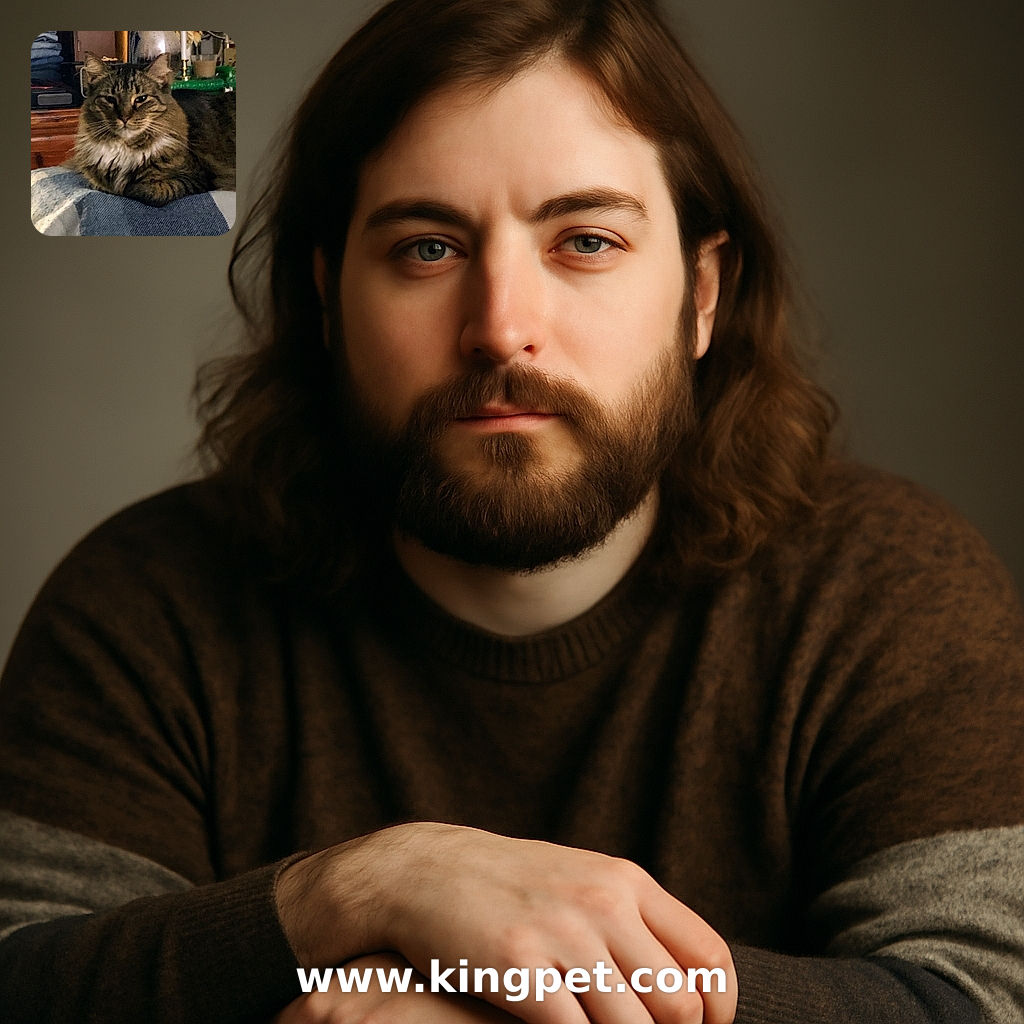 • A beautifully detailed tabby cat sits gracefully on a wooden bath tray, its golden eyes wide and curious, with a soft, blurred background that highlights its striped fur and poised posture.