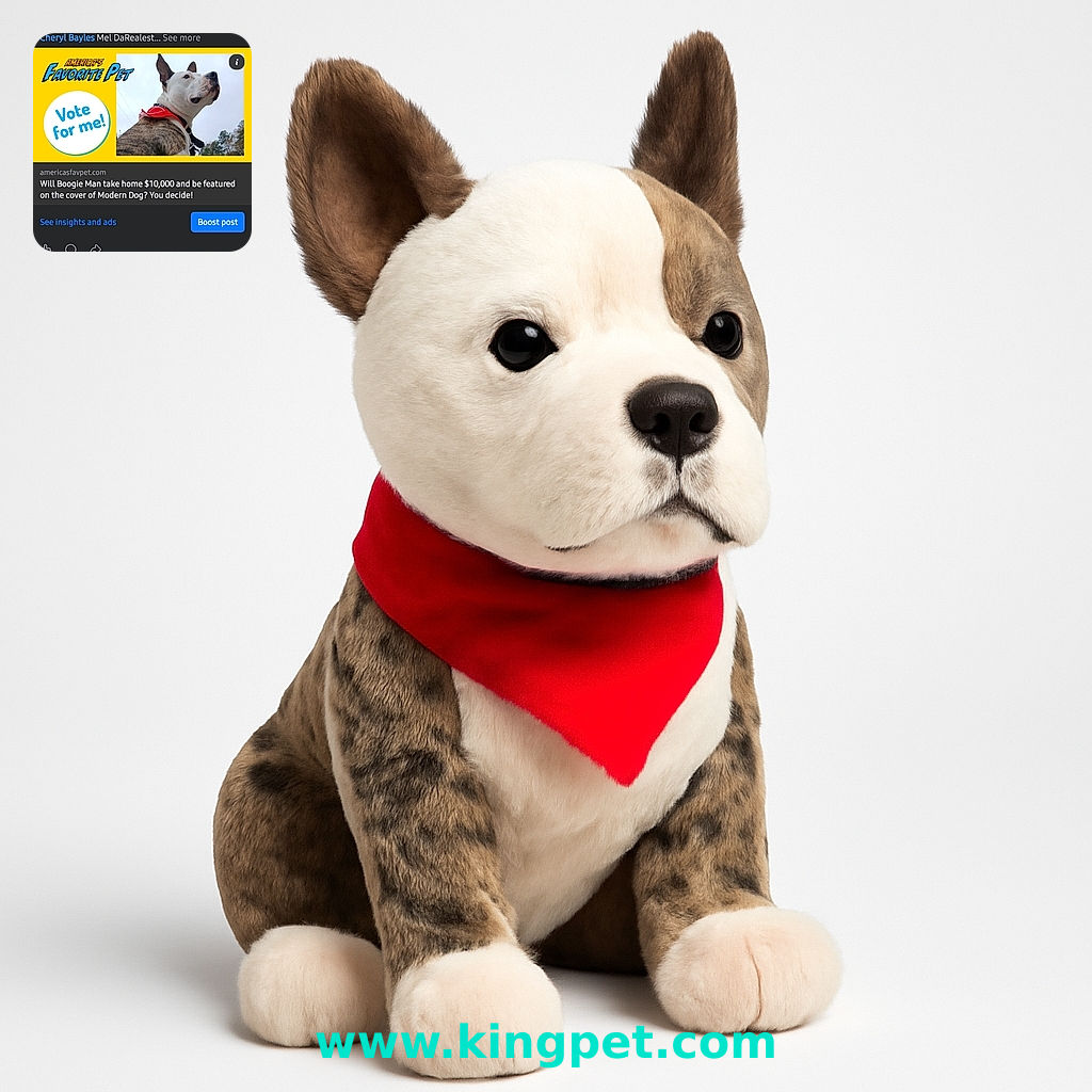 • A proud dog wearing a red bandana poses heroically against a cloudy sky, featured in a bright yellow voting campaign banner with bold text urging viewers to 'Vote for me!' and 'America's Favorite Pet.' The image is part of a social media post encouraging votes for a pet contest.