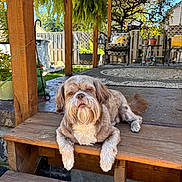 • Archie is registered to the contest to win money with this photo: animal, backyard, chair, daylight, dog, fence, ferns, garden, outdoor, pet, plants, porch, potted_plants, relaxed, rug, shaded, sunlight, tree, wood, wooden_steps